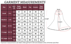 Small 4-6, Medium 8-10, Large 12-14, XL 16-18, XXL 20-22