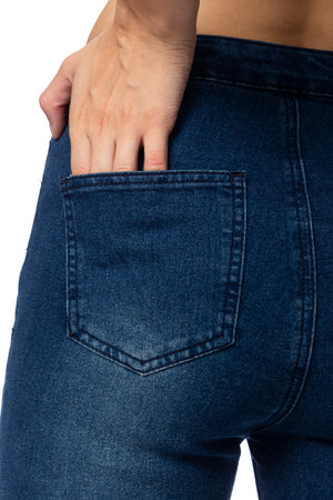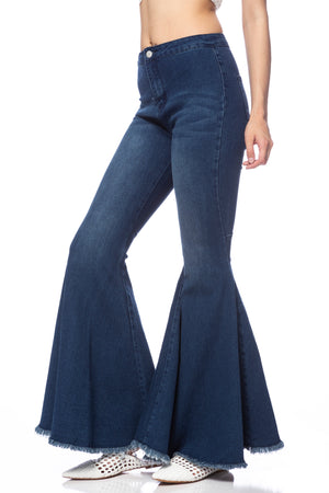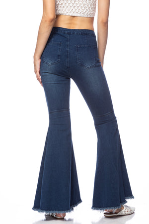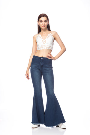 Dark blue denim Bell Bottom High Waist Denim Jeans