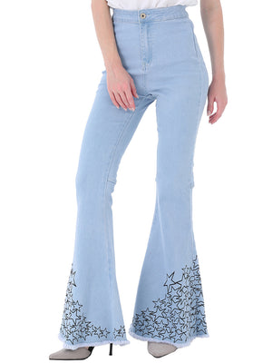 Light blue denim Bell Bottom High Waist Denim Jeans
