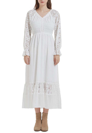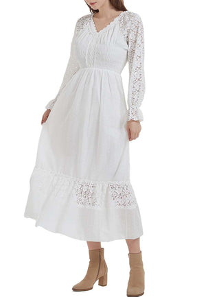 White Womens Lace Long Sleeve V Neck Fall Maxi Dress
