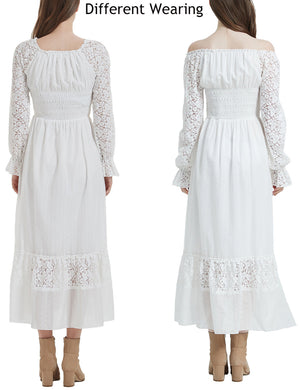 Imagine slipping into this stunning dress, made from a luxurious blend of 65% cotton and 35% polyester, which drapes beautifully over your figure. The intricate floral lace accents whisper grace, while the smocked waist flatters your silhouette, allowing for comfortable movement. Whether you wear it on or off your shoulders, you’ll feel effortlessly stylish.