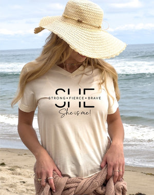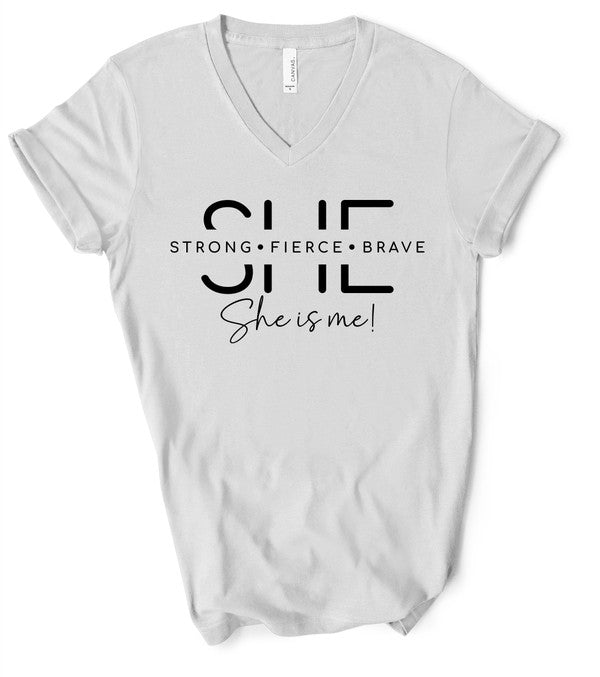 Imagine slipping into soft, breathable fabric that feels as good as it looks. The flattering v-neck design gives you that chic, laid-back look, perfect for any occasion - whether you're running errands, meeting friends for coffee, or enjoying a casual night out. This tee makes it effortless to express your fierce personality and shows the world that you are unstoppable.