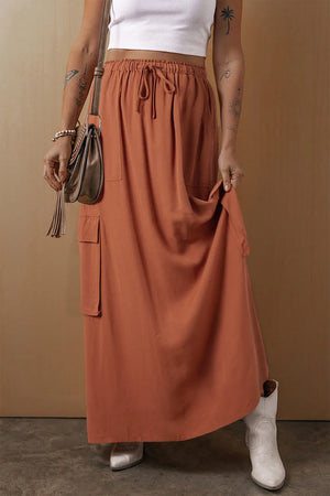 Experience Effortless Elegance with the Drawstring Maxi Skirt with Pockets