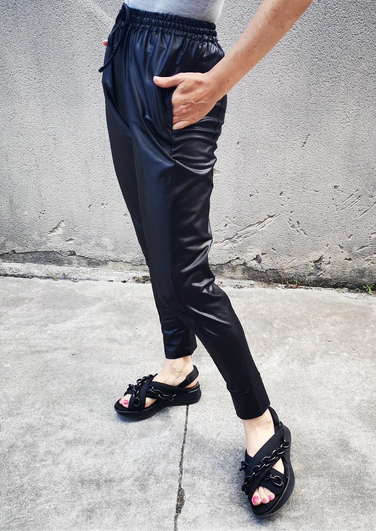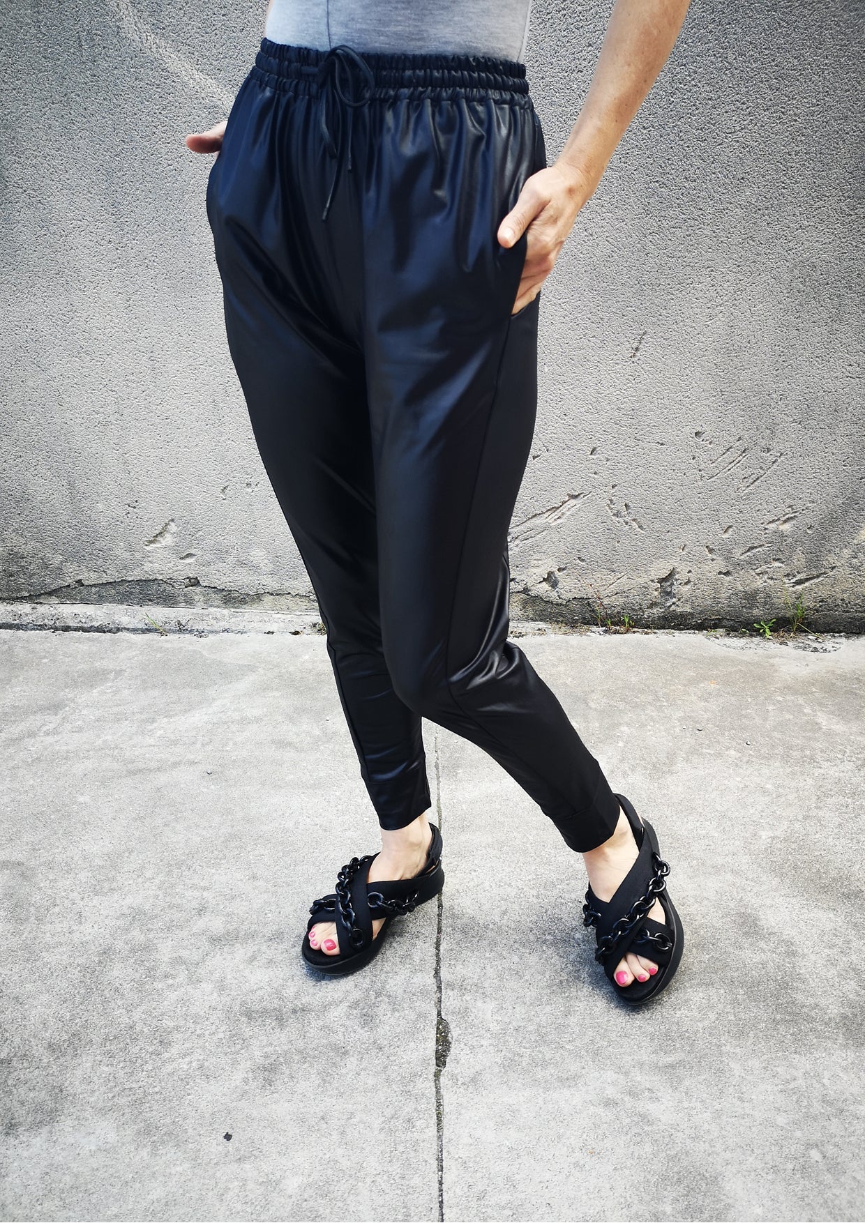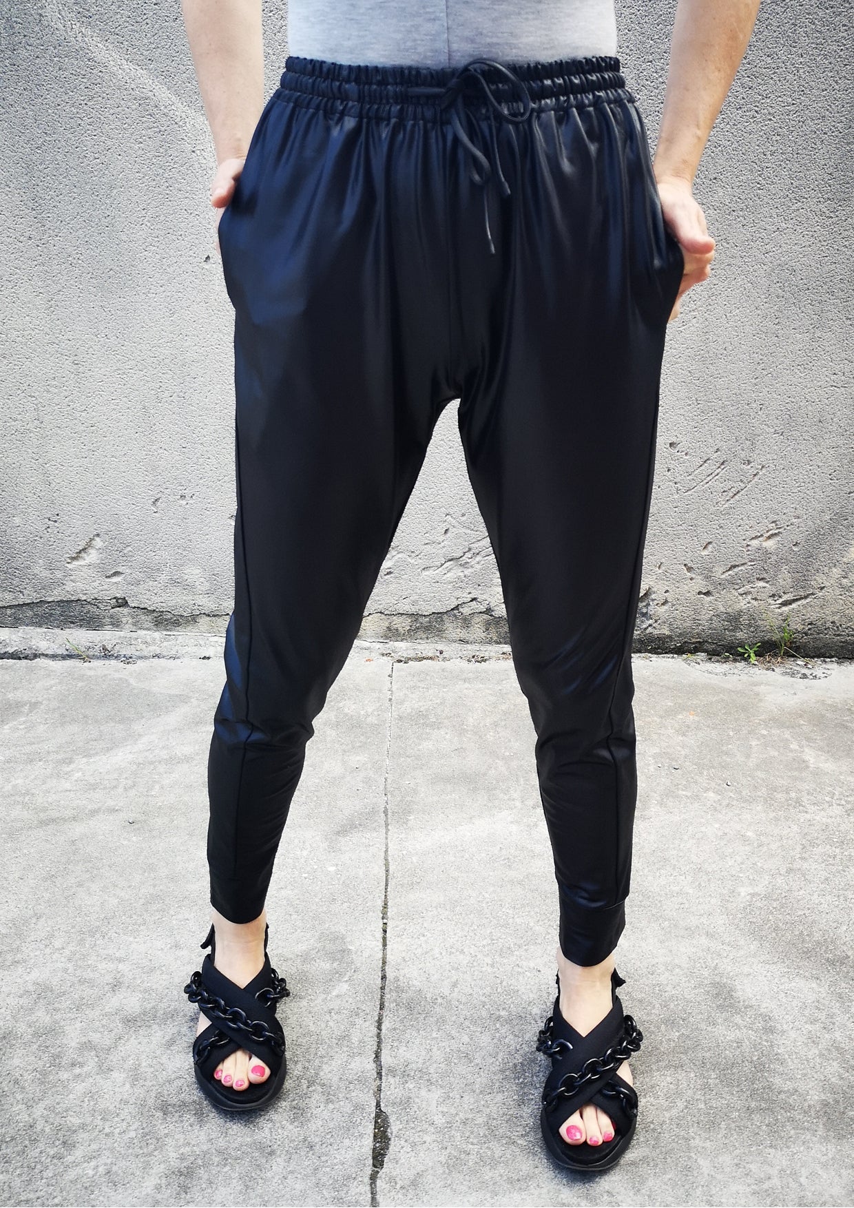 Step into a world where style meets comfort with the ELEGANT SWEATPANTS - Black Shiny. Designed for those who value both fashion and functionality, these pants are perfect for transitioning from a cozy day at home to a night out with friends.