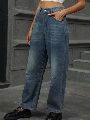 Step into a world of effortless style and all-day comfort with our Half Elastic Waist Straight Leg Jeans. Designed for those who appreciate versatility and ease, these jeans are your new wardrobe staple. Whether you're heading out for brunch with friends or enjoying a casual day at home, these jeans have got you covered.