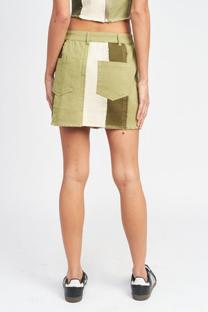 HIGH RISE COLOR BLOCK SKIRT