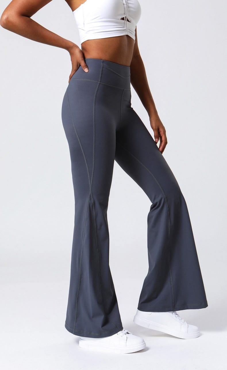 Gray High Waist Flare Pants with Stitching