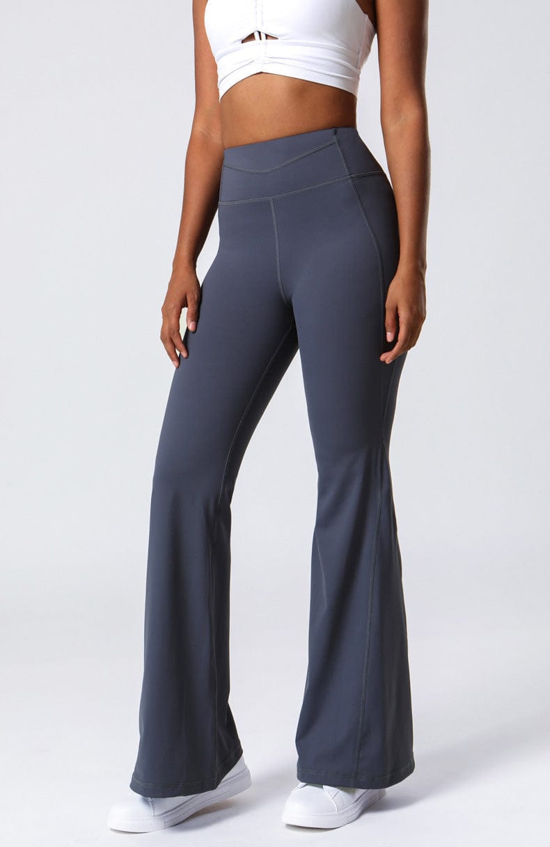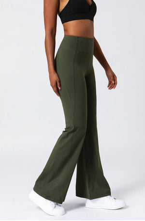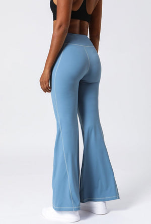 Left side view of High Waist Flare Pants with Stitching