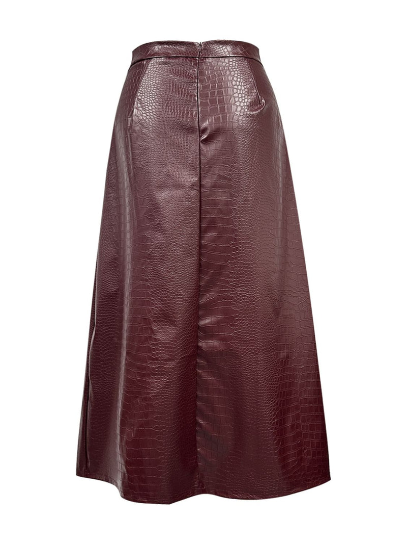 Burgundy High Waist Midi Skirt