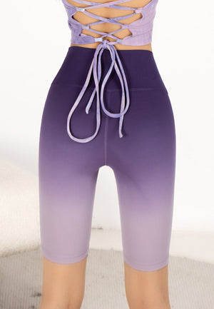 Purple High Waist Ombre Biker Shorts
