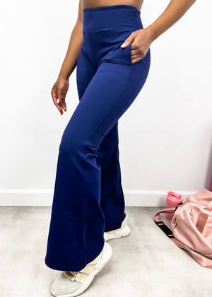 Blue Hip Sculpting High Rise Flared Yoga Pants with Pockets