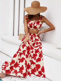 Honey Floral Tie Shoulder Top and Tiered Maxi Skirt Set