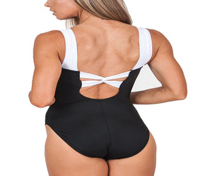 Imagine lounging by the pool, the sun glistening on your skin, compliments flowing as you flaunt that beautiful keyhole back. The innovative interlocking contrast straps not only add flair but also offer support for every aquatic adventure. The flattering contrast trim accentuates your silhouette beautifully, making this swimsuit a true standout. Enjoy the confidence that comes with the full coverage bottom while knowing that the built-in shelf bra and soft foam cups ensure you feel as good as you look.