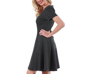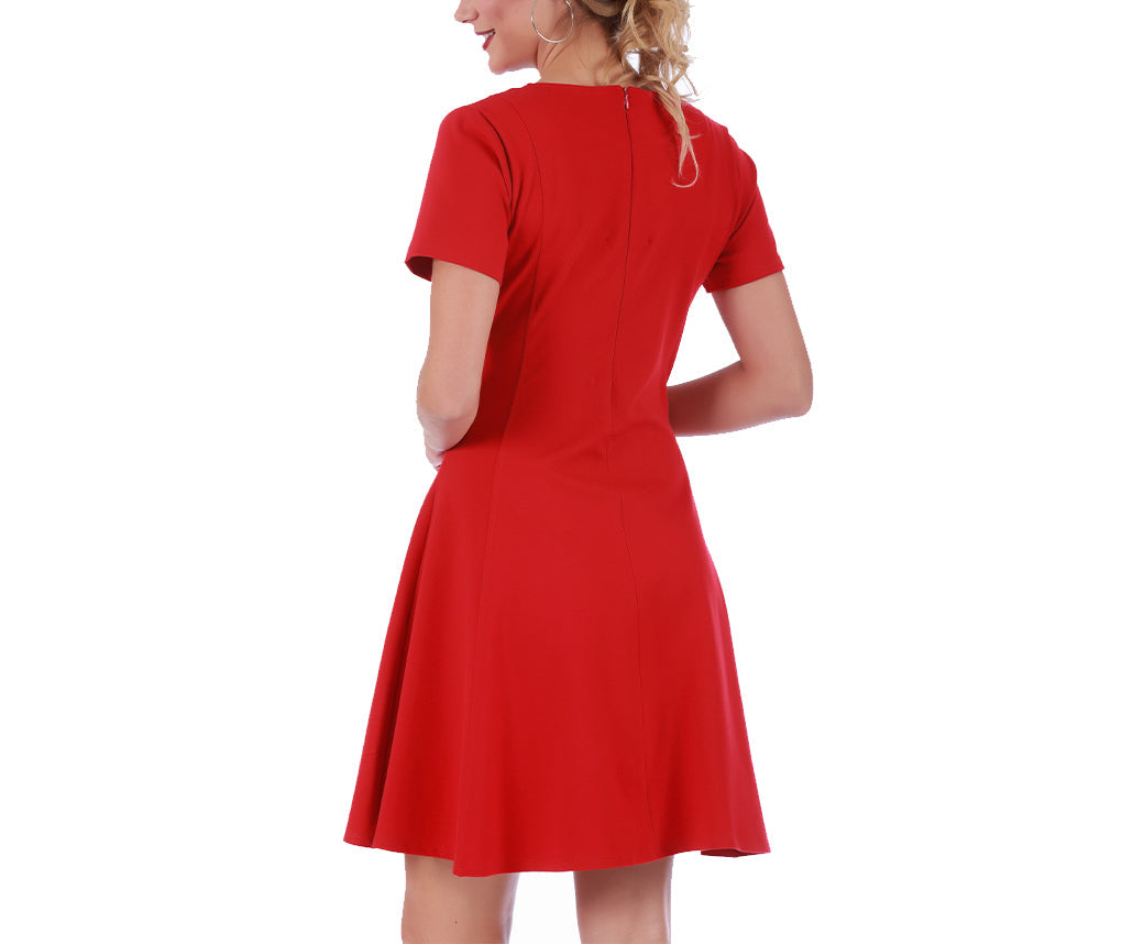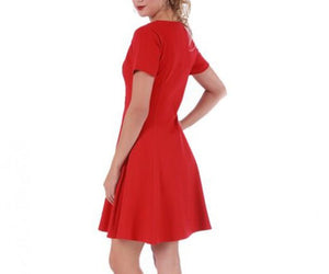 Imagine slipping into a dress that not only hugs your figure beautifully but also provides the freedom to chase after your little ones or enjoy a night out with friends. The flattering V-neckline draws attention to your face, while the fitted top and flared skirt create a graceful silhouette that is both trendy and timeless. Whether you're at the office or enjoying a dinner party, this dress keeps you looking put-together.