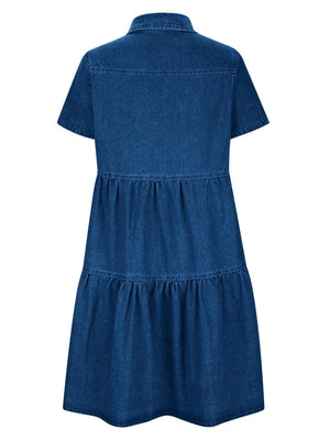 Pocketed Button Up Collared Neck Short Sleeve Denim Dress
