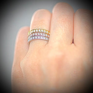 If you want a glorious ring with many stones and bright metal, then you'll want to try on our B.Tiff Stacking .01 ct Eternity Ring. The only problem you'll face is that you may not want to remove it.