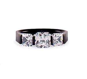 RG203B B.Tiff Black 3-Stone Cushion Cut Engagement Ring by B.Tiff New York (Retail)