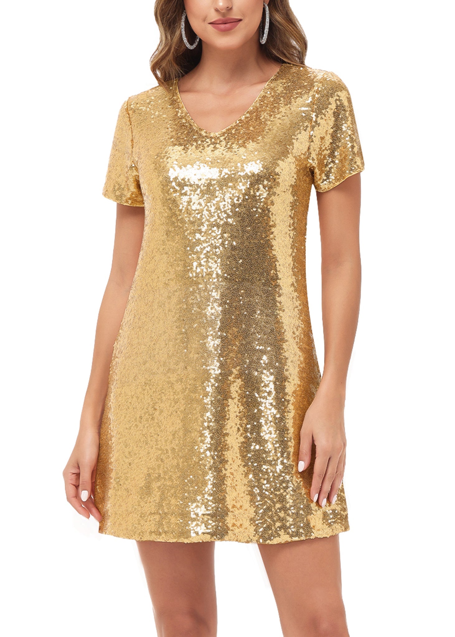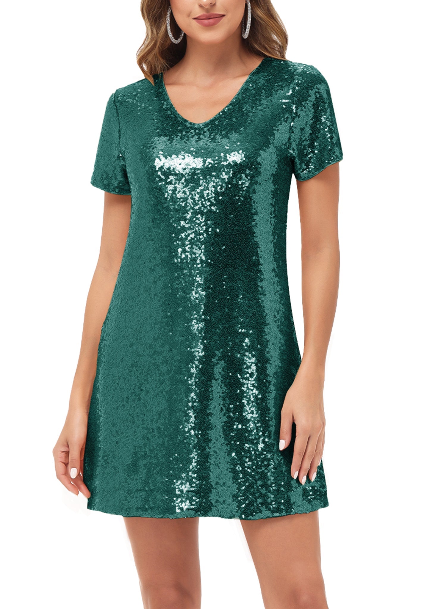 • Radiate Confidence: The chic v-shape neckline and short sleeves are designed to flatter, while the luxurious sequins catch the light, ensuring you shine everywhere you go.