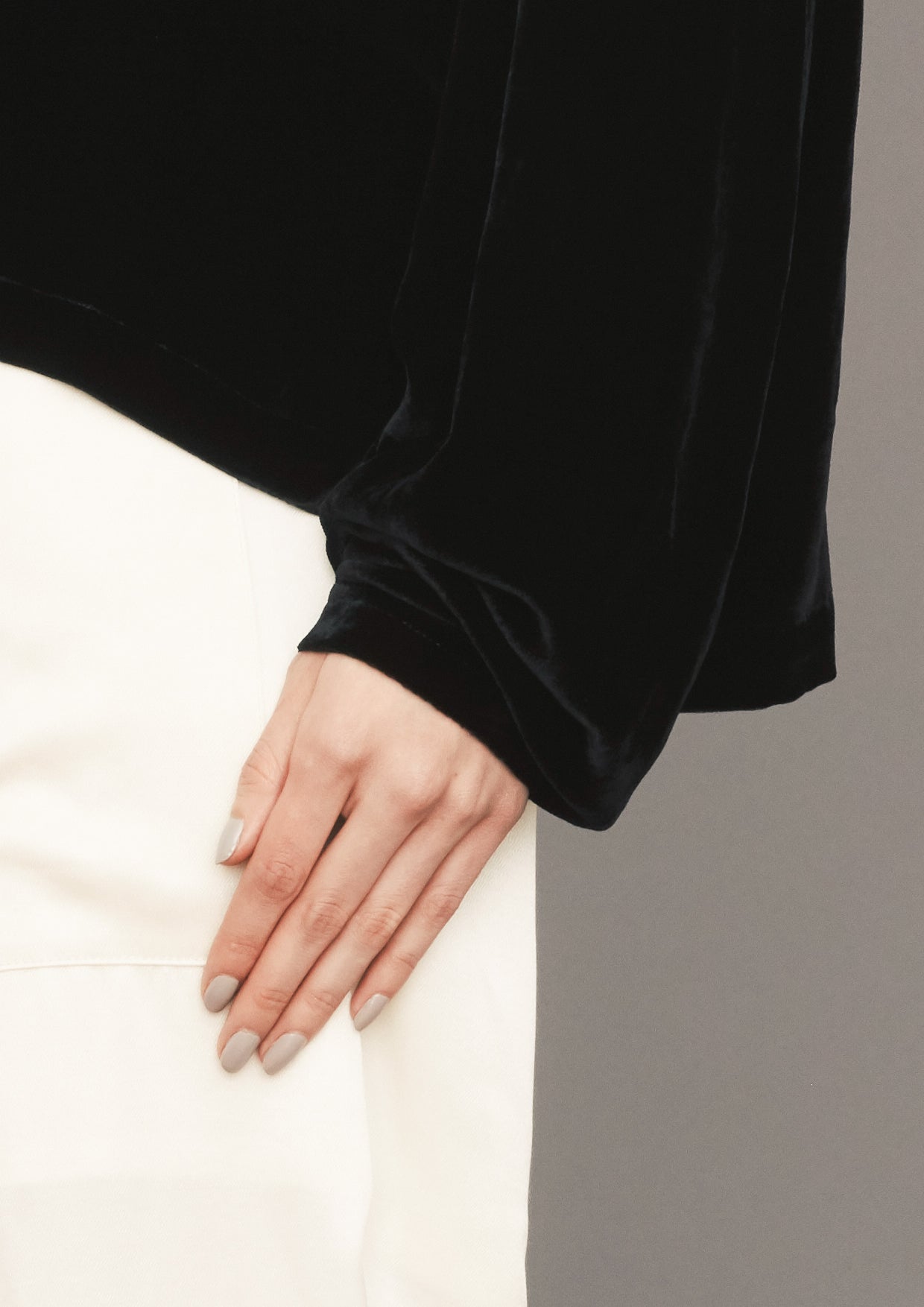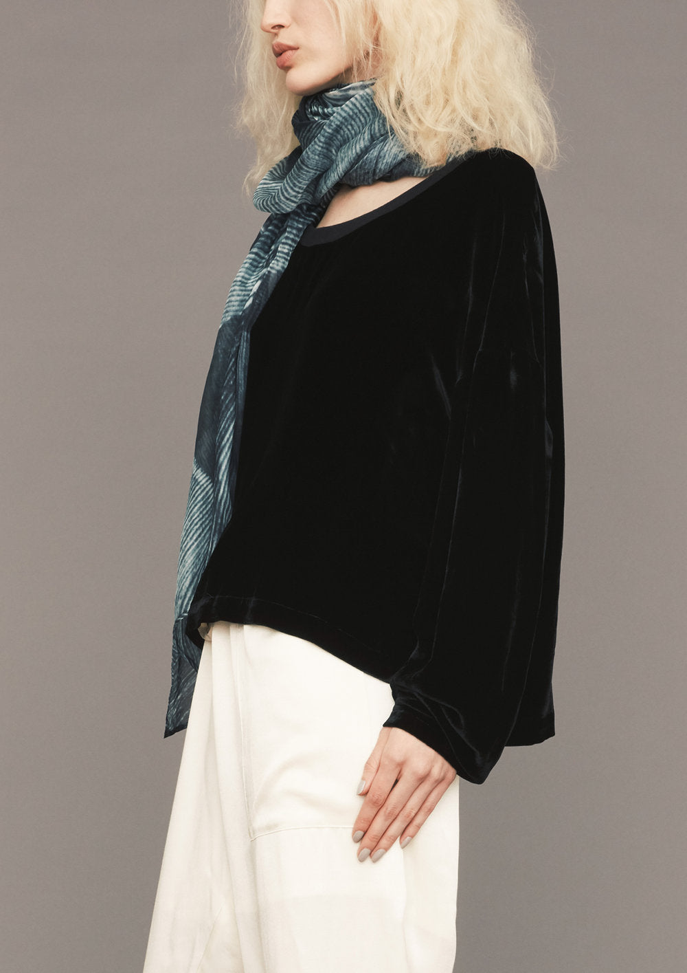 left side view of SHIRT LONG SLEEVES - SILK VELVET black