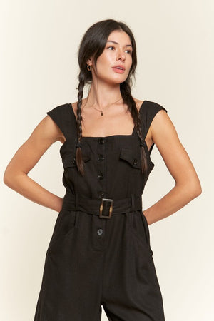 SLEEVELESS SQUARE NECK BUTTON DOWN ANKLE JUMPSUIT