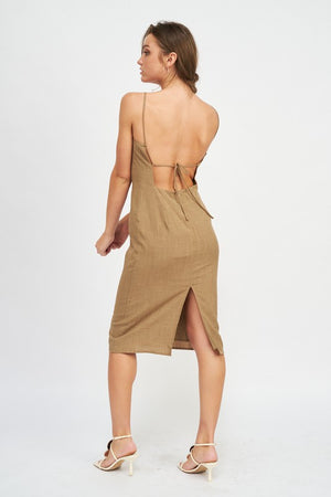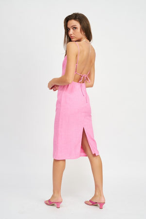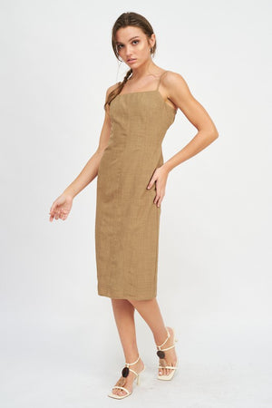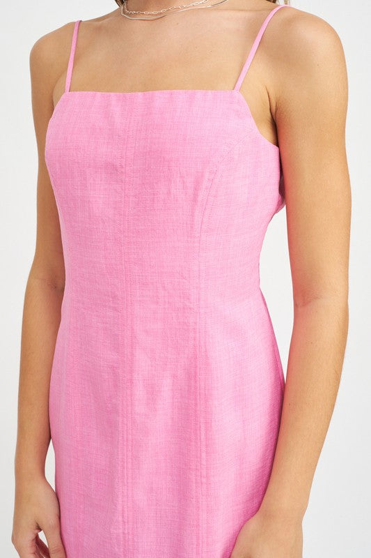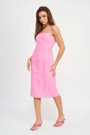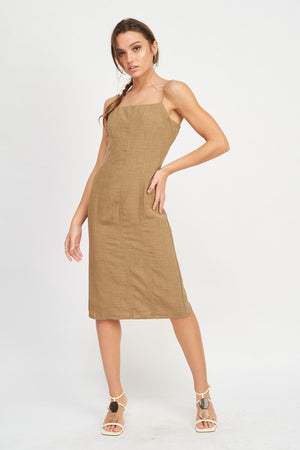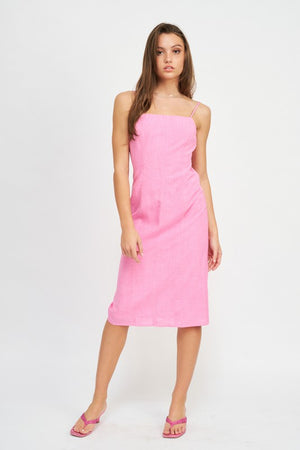 SPAGHETTI STRAP MIDI DRESS WITH SLIT