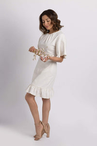 Meticulously crafted from ecru upcycled denim, Summer Fling is not just a style statement; it’s a commitment to sustainability. Sourced from manufacturing leftovers, this innovative fabric embodies the mantra 'Leftovers Are Beautiful', offering you an elegant dress while saving our planet from waste.
