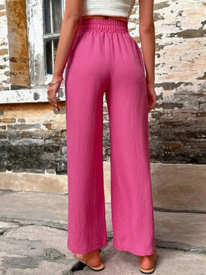 Transform your wardrobe with our exquisite Tied High Waist Wide Leg Pants with Pockets. Designed for the discerning shopper, these gorgeous pants are a blend of style and practicality that elevate your everyday look effortlessly.
